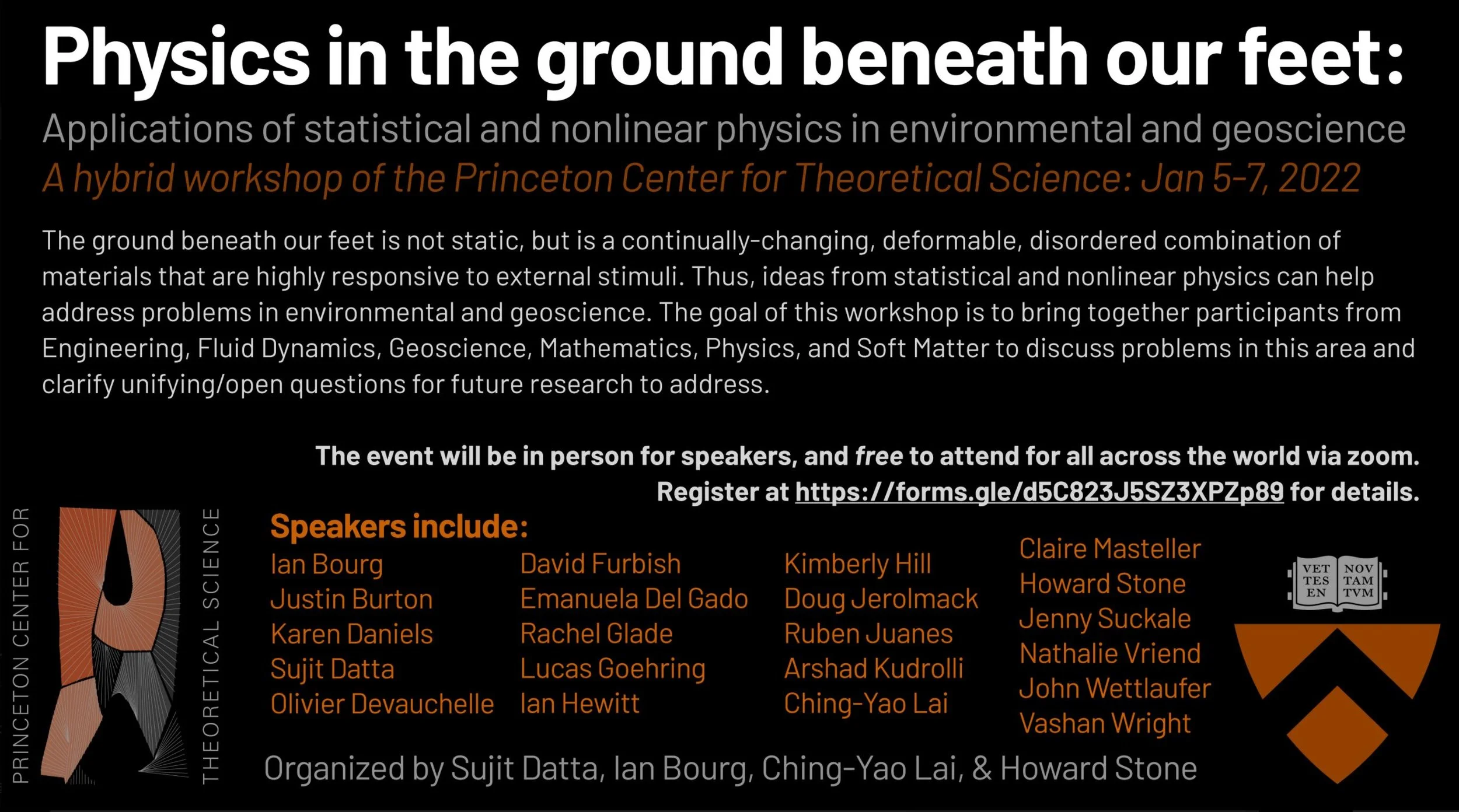 Excited for our Princeton Center for Theoretical Science workshop: Physics in the Ground Beneath our Feet- Applications of statistical and nonlinear physics in earth sciences (Jan 5-7, 2022)